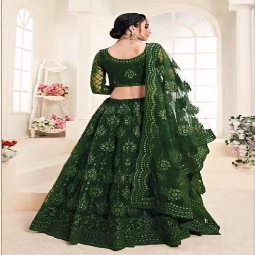 0 ★Embroidered Semi Stitched Lehenga Choli (Green)